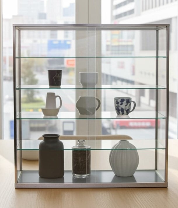 ・シンプルかつすぐれた耐久性を持つ業務用ガラスショーケースです。