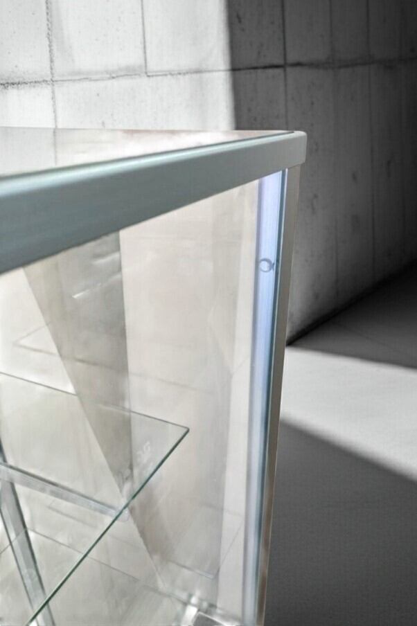 ・シンプルかつすぐれた耐久性を持つアルミフレームを使用した業務用ガラスケースです。